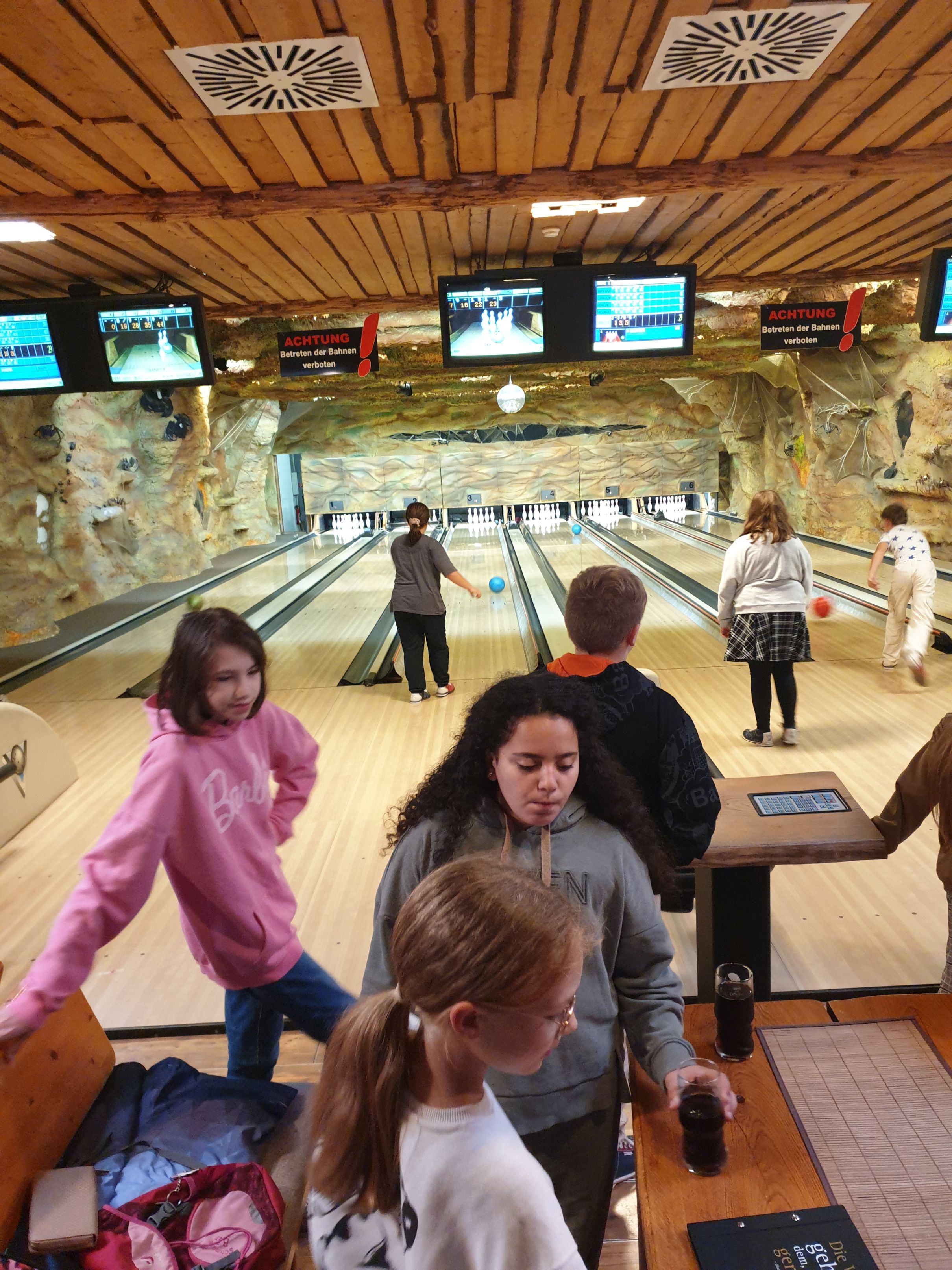 Die Woche begann sportlich mit einem Besuch der Bowlingbahn. Dort entfesselten die Kinder ihren Wettkampfgeist und es wurden richtige kleine Turniere ausgetragen. Es herrschte ausgelassene Stimmung, während die Kugeln über die Bahnen rollten und Pins fielen. Lachen, Anfeuerungsrufe und Jubel machten den Tag zu einem perfekten Start in die Ferienspiele.