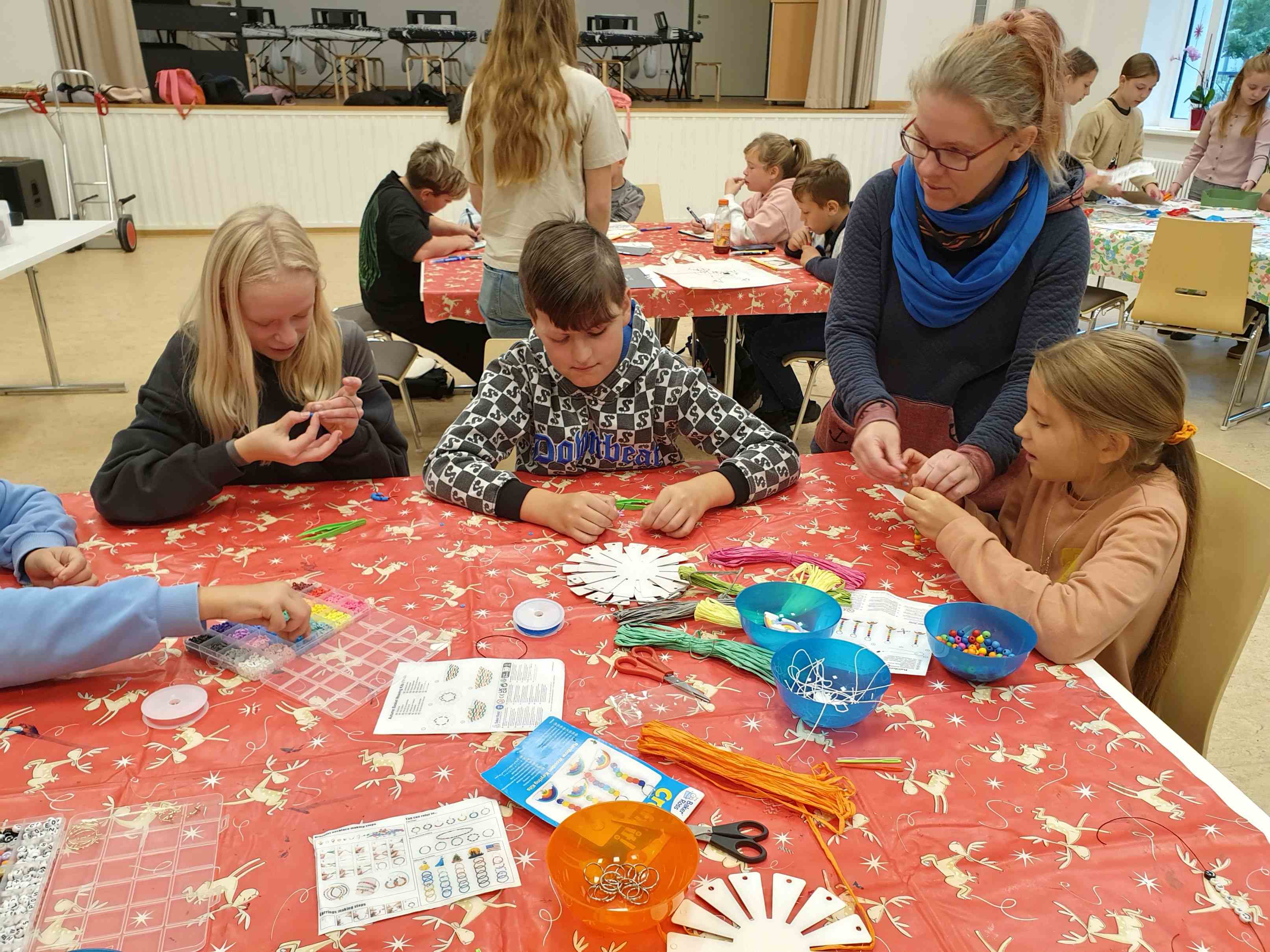 Über 30 Kinder waren dabei, als unser Kreativtag startete. Es wurden bunte Armbänder für sich selbst oder die beste Freundin geknüpft, Filzarbeiten gestaltet und Beutel sowie Federmäppchen mit eigenen Motiven bemalt. Auch das Bauen und Bemalen von Holzfiguren war ein echtes Highlight! Zur Stärkung gab es leckere Hotdogs, bevor der Film „Das Zeiträtsel“ den Tag perfekt abrundete.