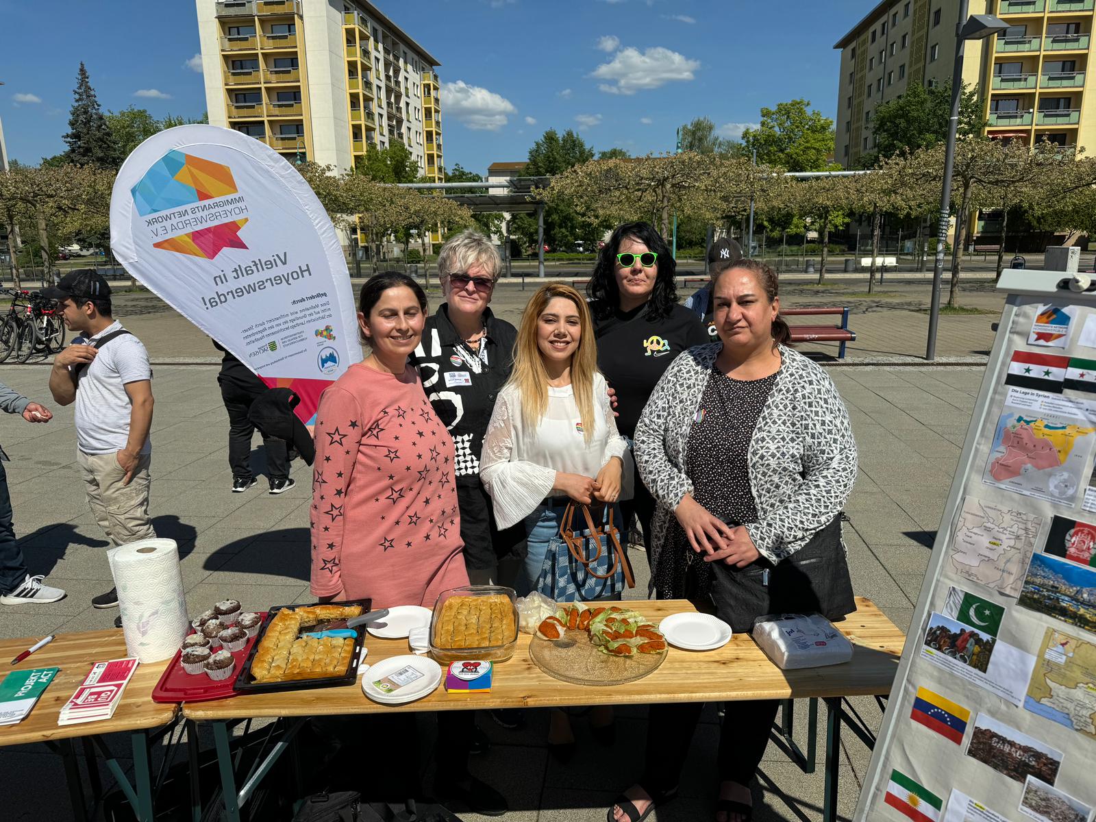 Natürlich kam die Kulinarik nicht zu kurz. Während der Bürgermeister Hr. Pink fleißig Pfannkuchen buk, hatten wir zu Hause schon einiges vorbereitet: Gebäck unter anderem aus Afghanistan, dem Irak, Pakistan und Venezuela, Muffins und syrisches Baklava nicht zu vergessen.