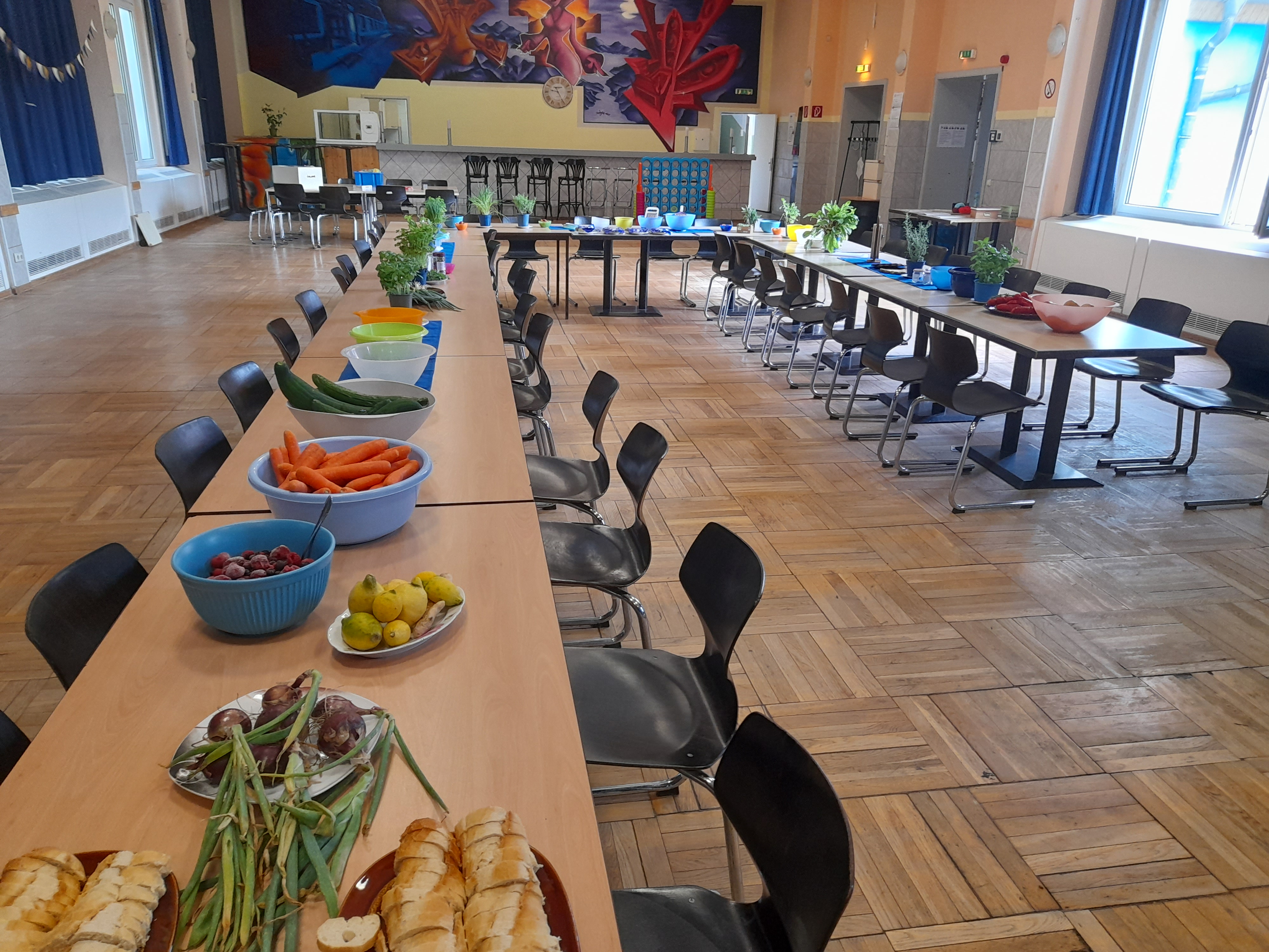 Außerdem fand unsere 1. Hexenküche statt. Mit ca. 25 Kinder aus dem „Hort an der Lindenschule“ sowie Ferienkindern der Stadt Hoyerswerda wurde an verschiedenen Kräutern gerochen, geschmeckt und die Wirkungsweise erklärt. Nach dem Kräuterrundgang ging es dann ans Zubereiten von Salaten, Quarkspeisen, Tomatenbutter, Apfelmus, Schnittchen und fruchtigen Getränken. Alle Ferienkinder gingen gesättigt und glücklich nach Hause bzw. in den Hort.