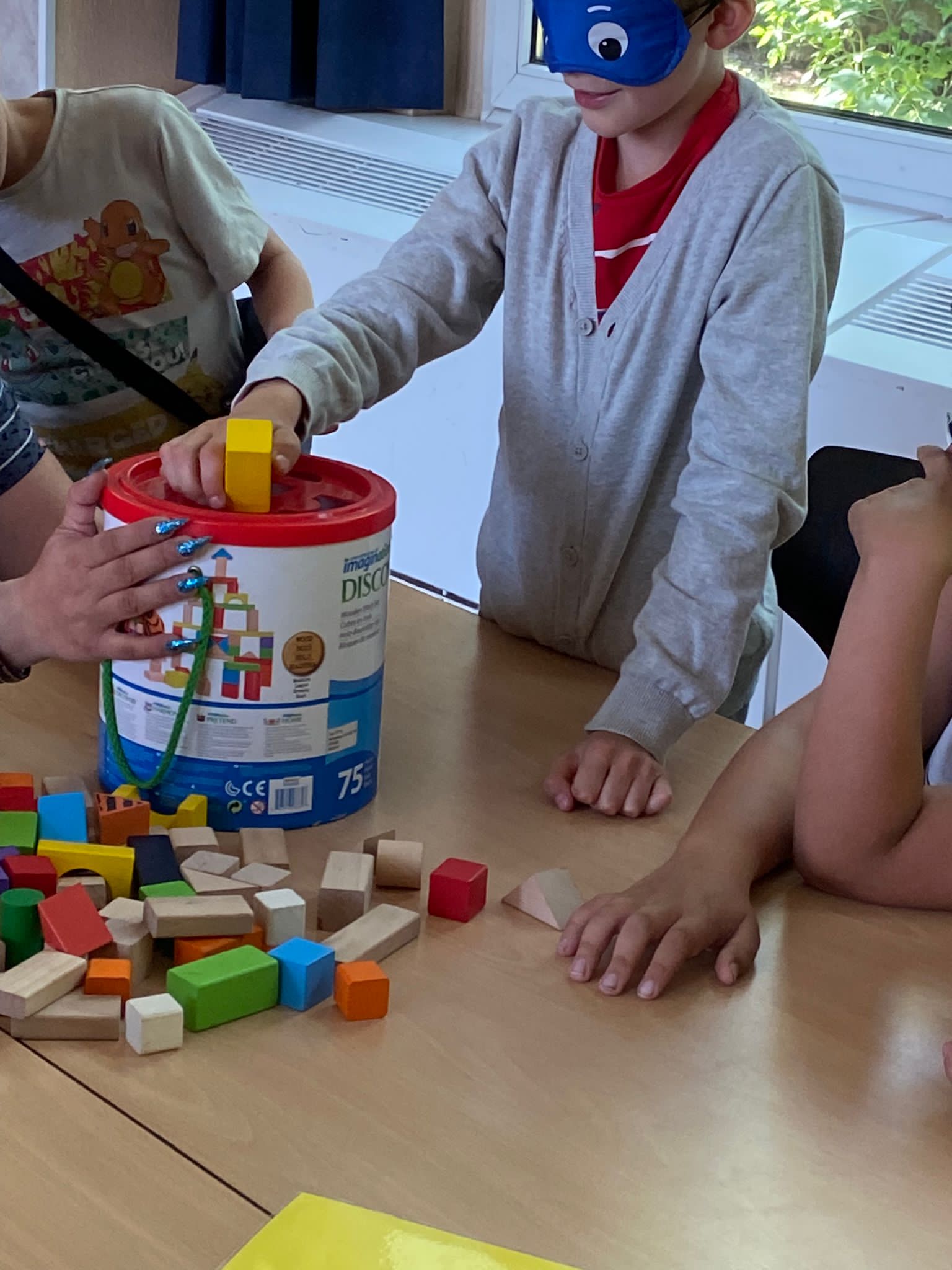Außerdem war der „Hort an der Lindeschule“ bei uns zu Besuch. Dabei stand das Thema: „Sinne“ im Vordergrund. An den Stationen wurden diese dann erprobt. Speziell ging es auch um den Sehsinn, wo die Kinder mit Augenbinde und Blindenstock den Saal erkunden durften.