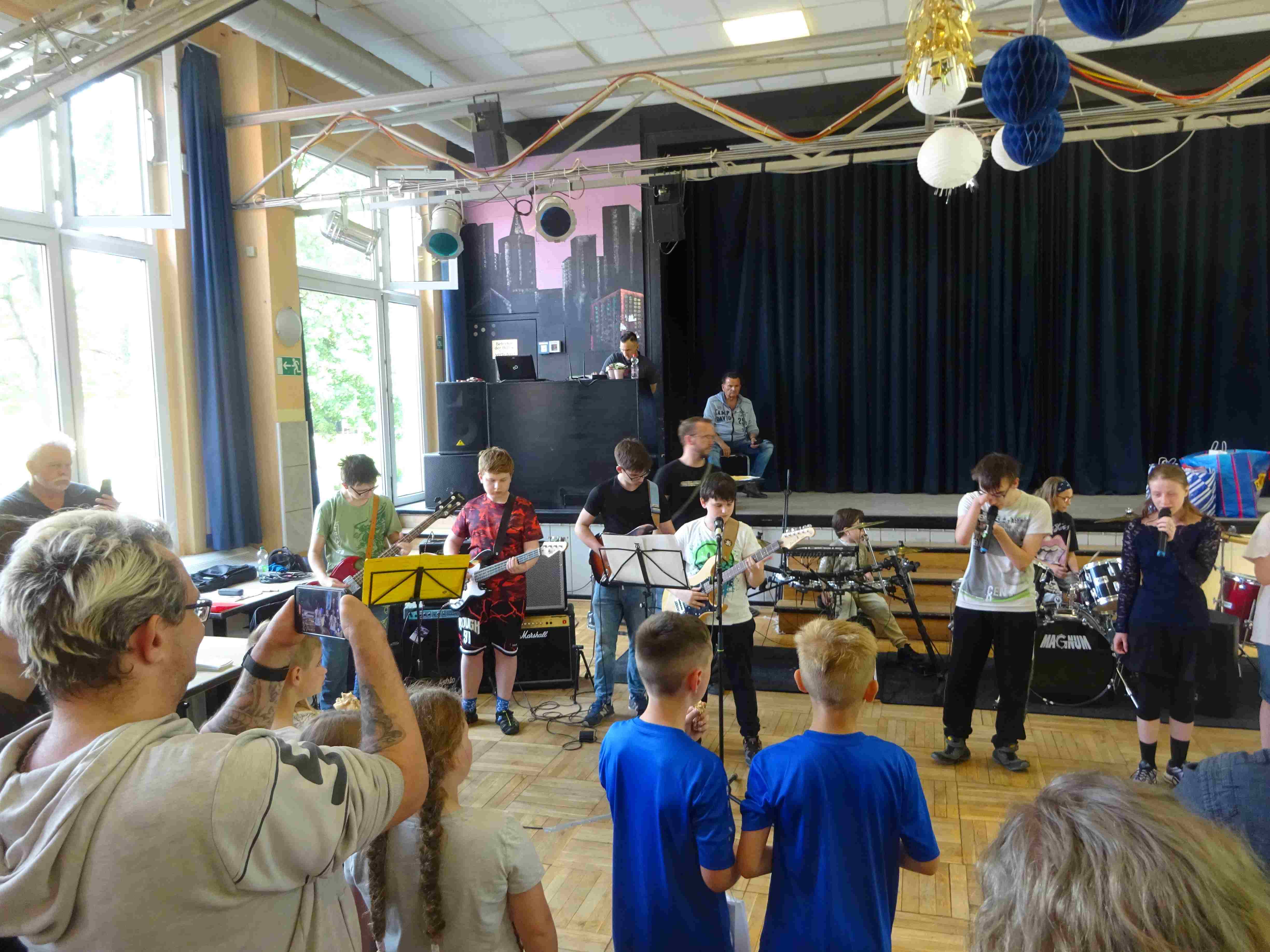 Das musikalische Programm war das i-Tüpfelchen. Am Anfang eröffnete die Schülerband der Dr. Friedrich-Wolf-Schule das Programm. Danach folgten die eigenen Tanzgruppen vom Jugendclubhaus OSSI. Herr Roland Wehner führte durch das Programm, sprach mit den Kindern, verteilte Geschenke und sorgte für musikalische Stimmung.