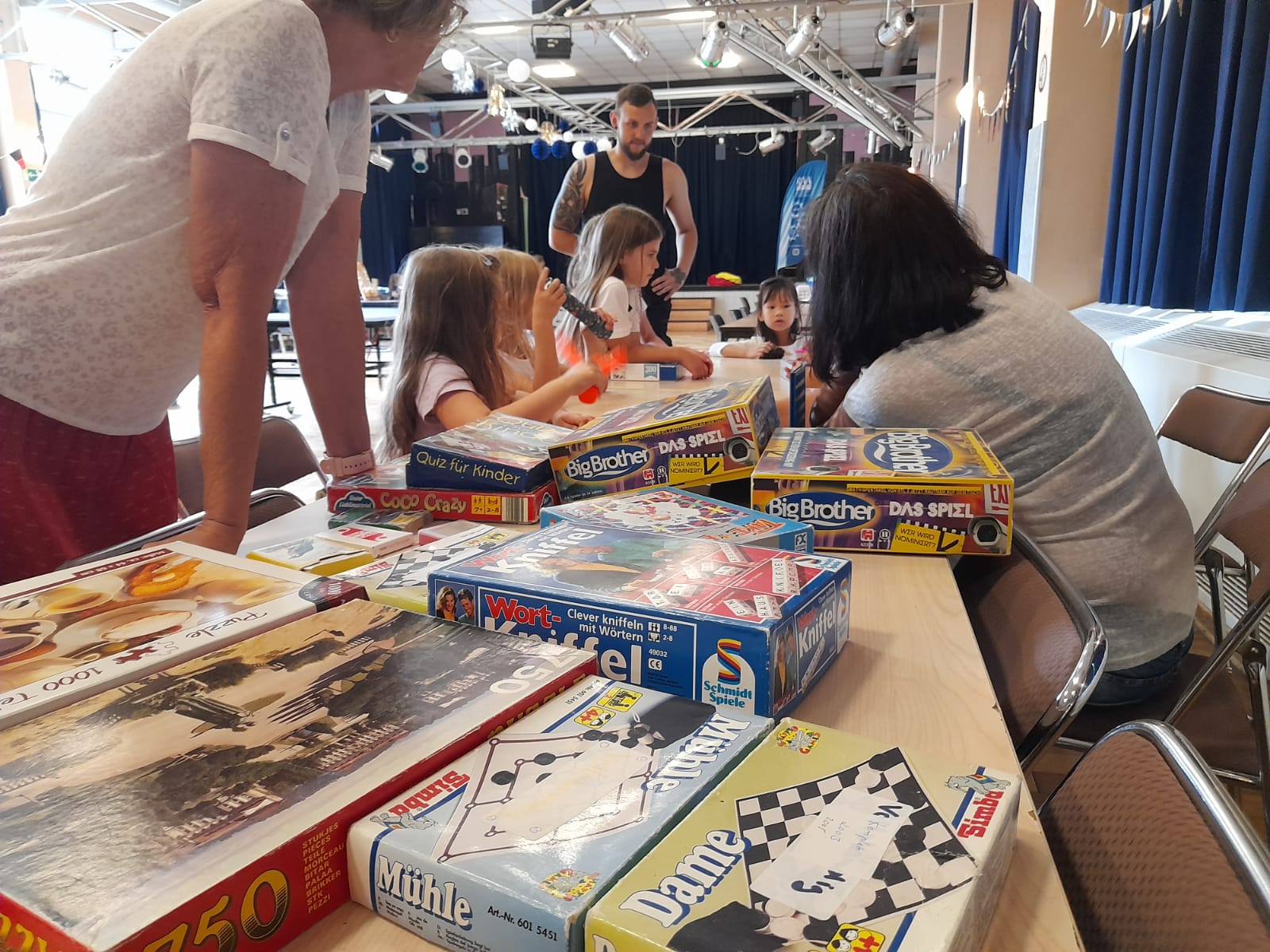 Am 1. Actiontag mit Spielzeugtauschbörse konnte an vielen Stationen gedartet, geflochten, gebaut oder neue Spiele entdeckt werden. Und danach ging es an die lange Tafel zur Spielzeugtauschbörse, wo untereinander Spiele getauscht wurden.