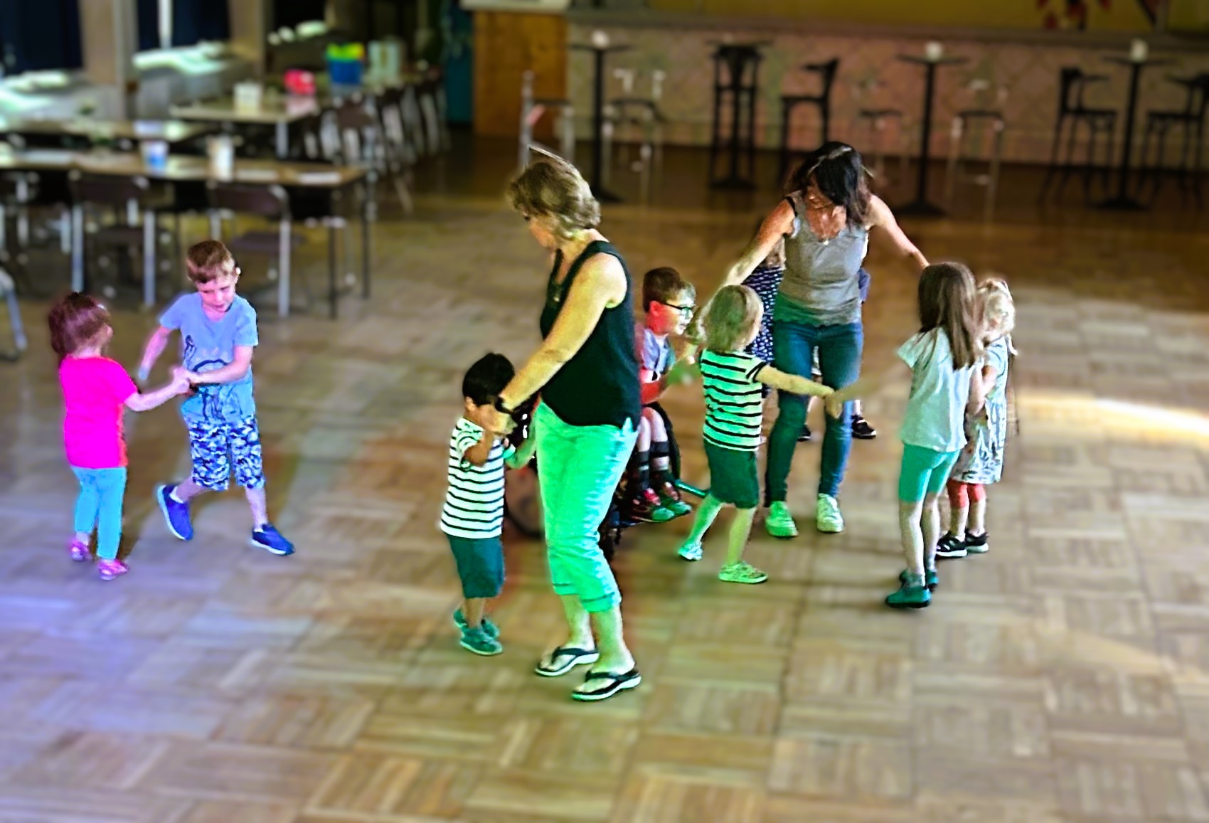 An einem anderen Tag hatten wir Besuch von der KITA Pusteblume. Die kleinen Mädchen und Jungen erkundeten unser Haus. Danach ging es zu Spiel, Spaß und Musik in den großen Saal. Dort konnten sie sich frei entfalten.