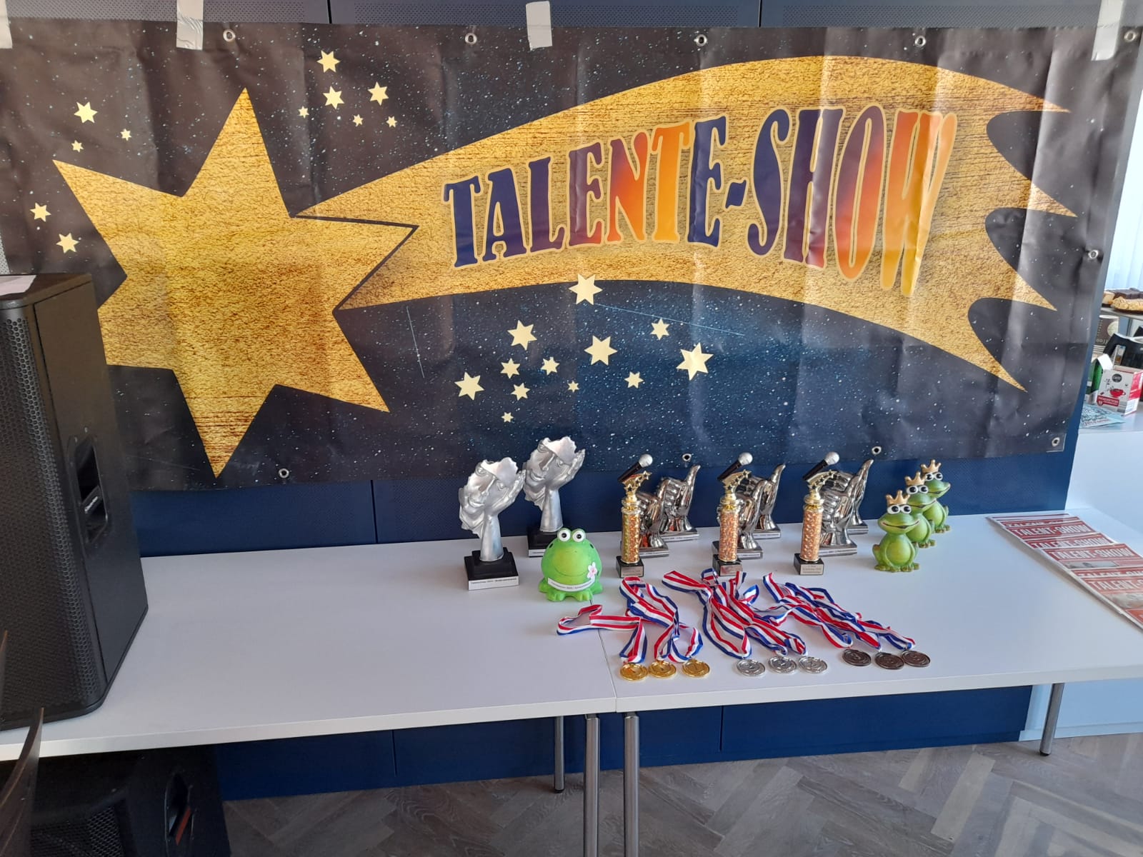 Dieses Jahr fand unsere Talentshow für Menschen mit Behinderung in den Räumen der Lebensräume statt. Zu Beginn der Veranstaltung wurde der Saal passend zur Veranstaltung verschönert. So langsam kamen die Akteure und Akteurinnen aus verschiedenen Einrichtungen an und man merkte langsam wie die Aufregung stieg. Punkt 16:00 Uhr eröffnete Herr Roland Wehner die Show mit dem ersten Beitrag. Während der Veranstaltung wurde Playback gesungen, live gesungen, getanzt, ein Sketch erzählt und Musikstücke instrumental wie z.B. durch Schlagzeug und Keyboard präsentiert. Das Publikum bekam viele tolle Sachen zusehen und die Jury hatte einiges zu tun. Während der Pausen wurden alle mit Kaffee und Kuchen versorgt. Nachdem die Jury alle Punkte zusammen- gezählt hatte, ging es zur Siegerehrung. Es wurden in den Kategorien Einzel-, Gruppen- und Instrumentaldarbietungen gewertet. Es gab aber auch Sonderpreise wie der Emotionspreis, der Schönste-Lächeln-Preis, der Sympathiepreis, der Moderationspreis und dieses Jahr neu der Jurypreis. So sahen bei der Siegerehrung viele Akteur*innen glücklich aus und gingen mit einem breiten Lächeln nach Hause.